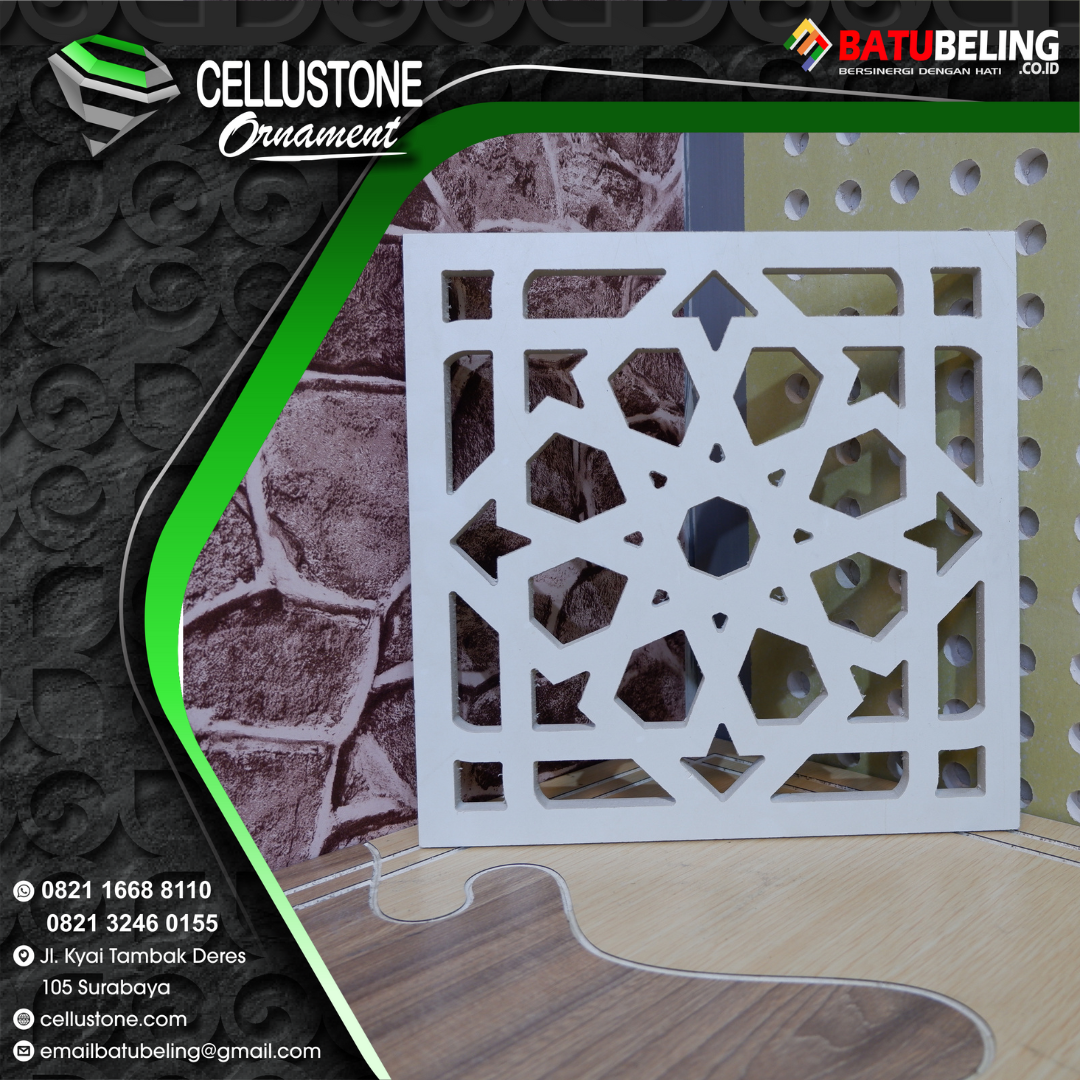 Batubeling menghadirkan fasade ornamen dengan harga yang kompetitif, menjadikannya pilihan sempurna bagi Anda yang ingin menciptakan kesan mewah tanpa menguras kantong. Dirancang dengan kualitas premium dan beragam pilihan desain elegan, partisi ini mampu mempercantik setiap ruangan—mulai dari hunian pribadi, kantor modern, hingga tempat ibadah. Dengan facade ornamen dari Batubeling, Anda tidak hanya mendapatkan estetika yang menawan, tetapi juga produk yang kuat dan tahan lama.